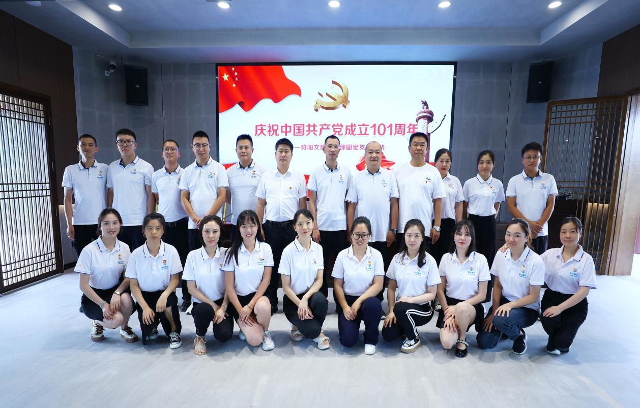 為慶祝中國共產(chǎn)黨成立 101 周年, 符陽文旅黨支部在瀘 州阜陽集團(tuán)的領(lǐng)導(dǎo)下組織開展 “ 慶祝中國共產(chǎn)黨成立 101 周年 ” 主題黨日活動,阜陽集團(tuán)黨委及各支部代表蒞臨活動現(xiàn)場。