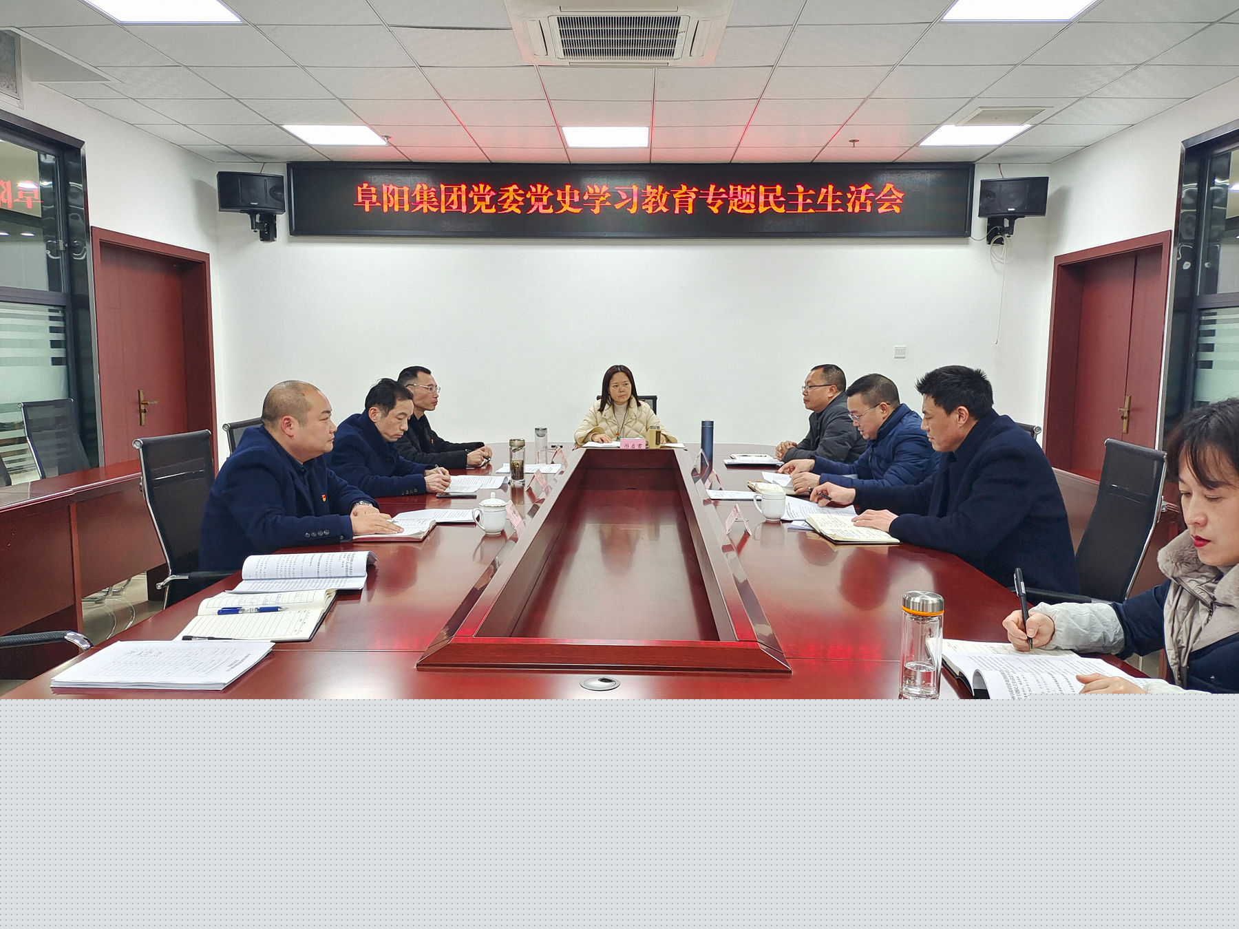 2022年1月25日下午,阜陽集團黨委召開黨史學(xué)習(xí)教育專題民主生活會。集團黨委書記、董事長游啟君主持會議,黨委全體成員出席會議。