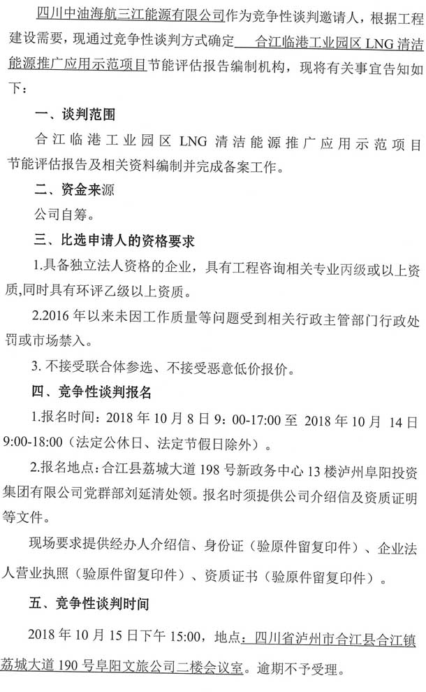 合江臨港工業(yè)園區(qū)LNG清潔能源推廣應(yīng)用示范項(xiàng)目節(jié)能評(píng)估報(bào)告編制單位競(jìng)爭性談判公告.doc