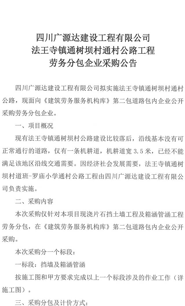 四川廣源達(dá)建設(shè)工程有限公司法王寺鎮(zhèn)通樹壩村通村公路工程勞務(wù)分包企業(yè)采購(gòu)公告.doc
