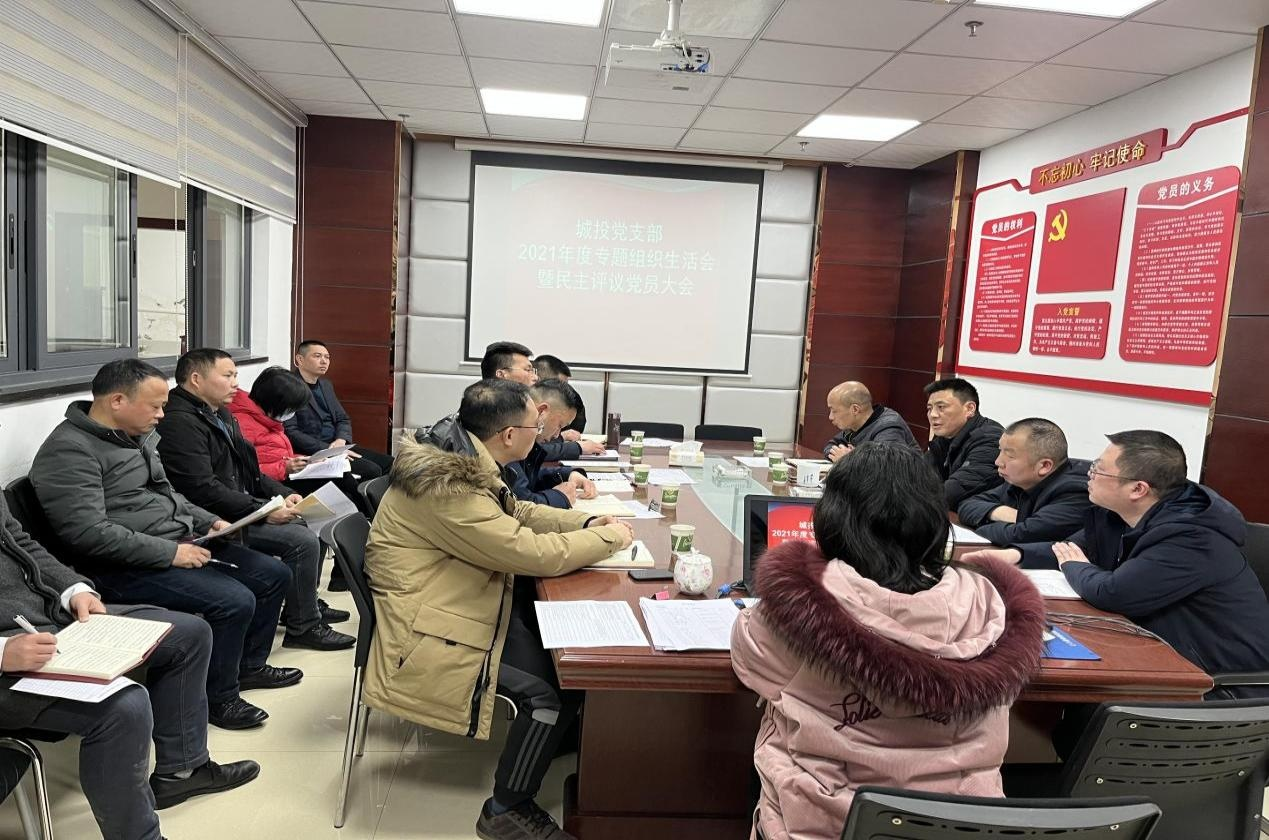 2022 年 2 月 23 日下午, 城投黨支部組織召開 2021 年度 組織生活會并開展民主評議黨員。 會議由黨支部書記鞠志良 主持,全體黨員同志參會。