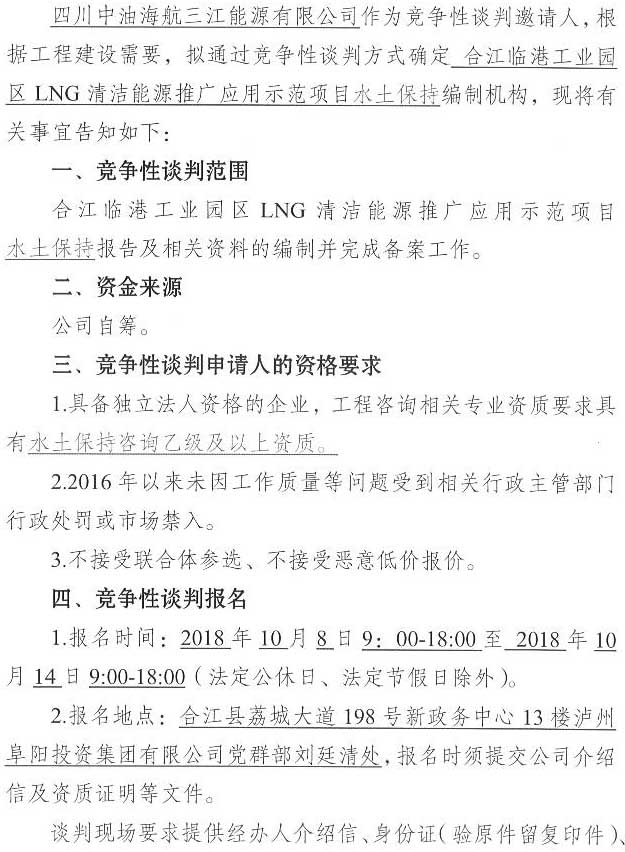 合江臨港工業(yè)園區(qū)LNG清潔能源推廣應(yīng)用示范項(xiàng)目水土保持報(bào)告單位競爭性談判公告.docx