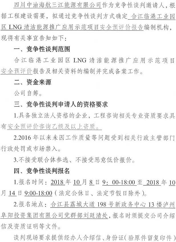 合江臨港工業(yè)園區(qū)LNG清潔能源推廣應用示范項目安全預評價單位競爭性談判公告.docx