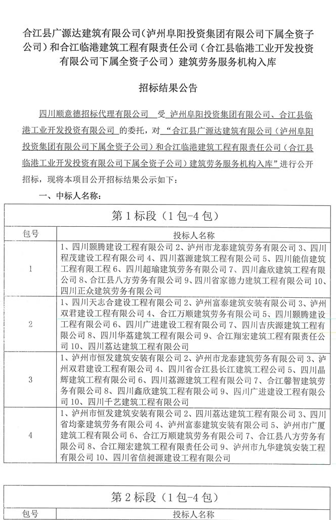 公告:建筑勞務(wù)服務(wù)機構(gòu)入庫招標結(jié)果公告