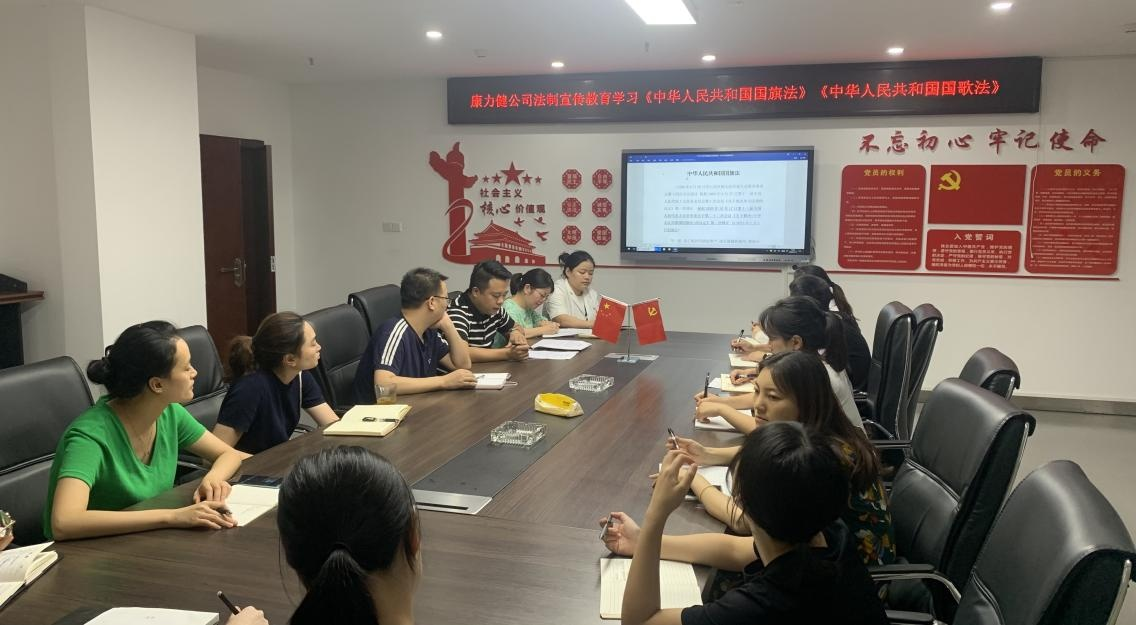 7 月 13 日 下 午 , 康 力 健 公 司 組 織 開 展 《 國(guó) 旗 法 》 《 國(guó) 歌 法 》 的宣傳教育和知識(shí)普及活動(dòng),由綜合部部長(zhǎng)賀佳組織召開。