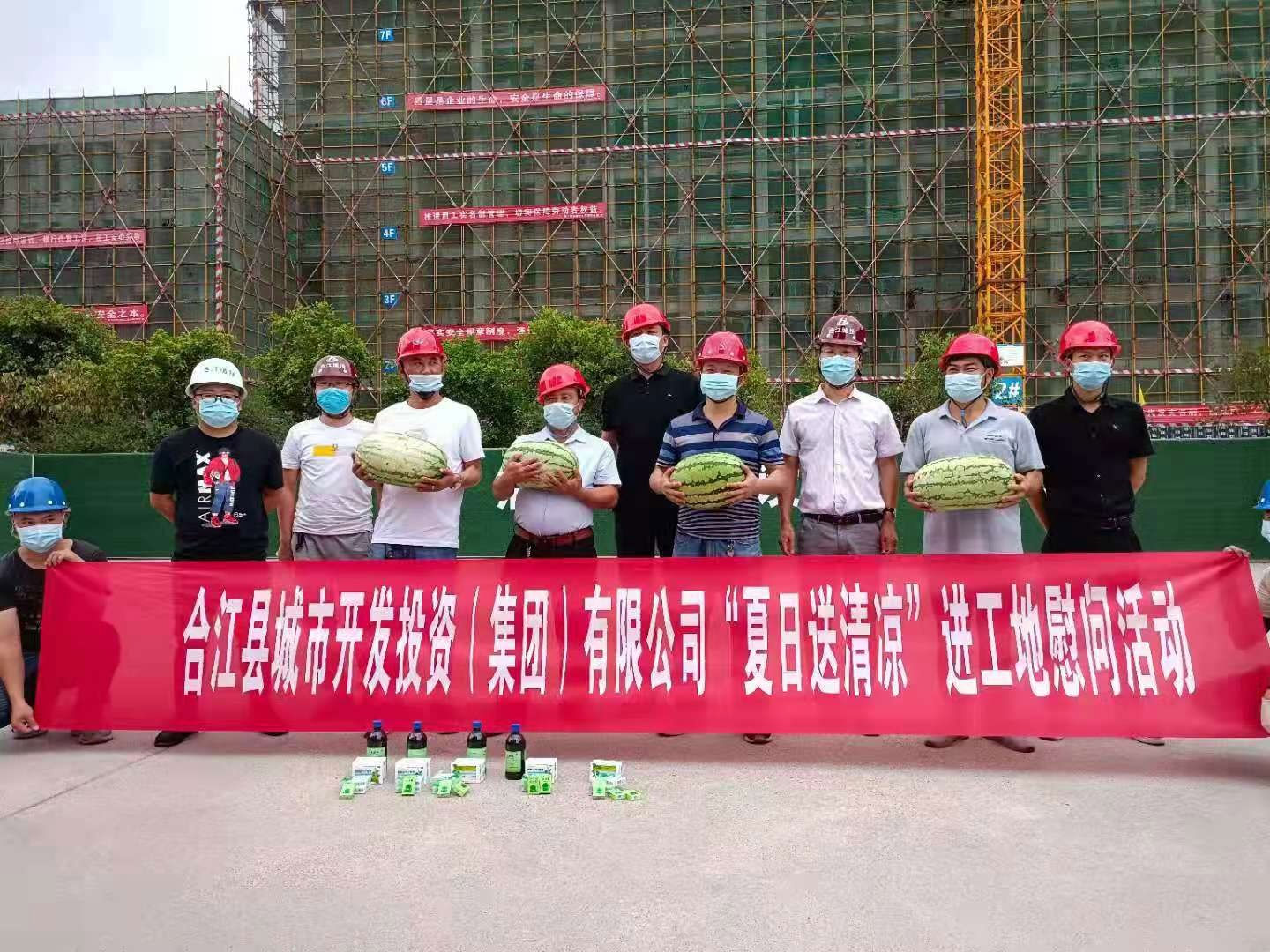 近日,為切實(shí)做好防暑降溫工作,慰問在一線奮戰(zhàn)的建設(shè)者們,合江縣城市開發(fā)投資(集團(tuán))有限公司組織開展了“夏日送清涼”進(jìn)工地慰問活動。公司董事長兼總經(jīng)理鞠志良同志、副總經(jīng)理陳磊同志等分別帶隊前往合江縣城區(qū)及各鄉(xiāng)鎮(zhèn)建設(shè)項目工地現(xiàn)場,為奮戰(zhàn)在一線的工作人員送上了西瓜、藿香正氣口服液等防暑物品、藥品,同時,也進(jìn)一步加強(qiáng)防疫知識宣傳,讓他們在盛夏的酷暑中感受到一份清涼與關(guān)懷!