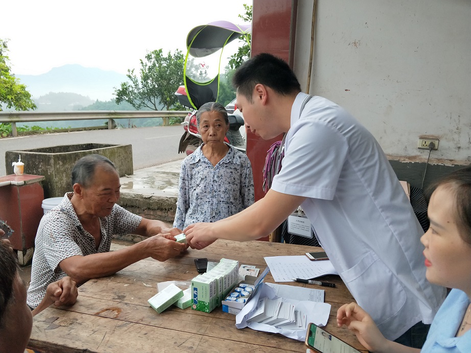 活動(dòng)中,家庭醫(yī)生團(tuán)隊(duì)成員為當(dāng)?shù)卮迕裰v解家庭醫(yī)生服務(wù)項(xiàng)目、醫(yī)改政策,并提供健康教育、用藥指導(dǎo)、咨詢(xún)服務(wù)等;洪昇公司為村民們發(fā)放價(jià)值3000余元的十滴水、清涼油、人丹等清涼解暑藥。