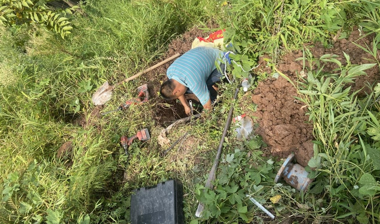 荔江鎮(zhèn)一線工作員日常巡查供水管網(wǎng)及維修