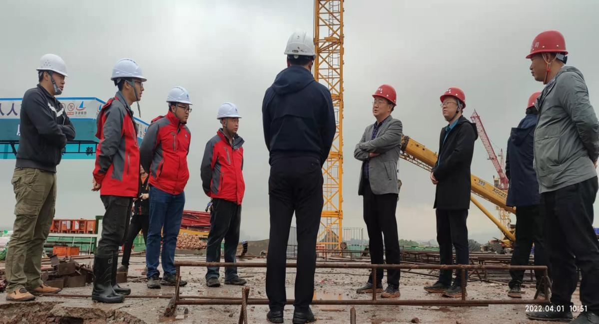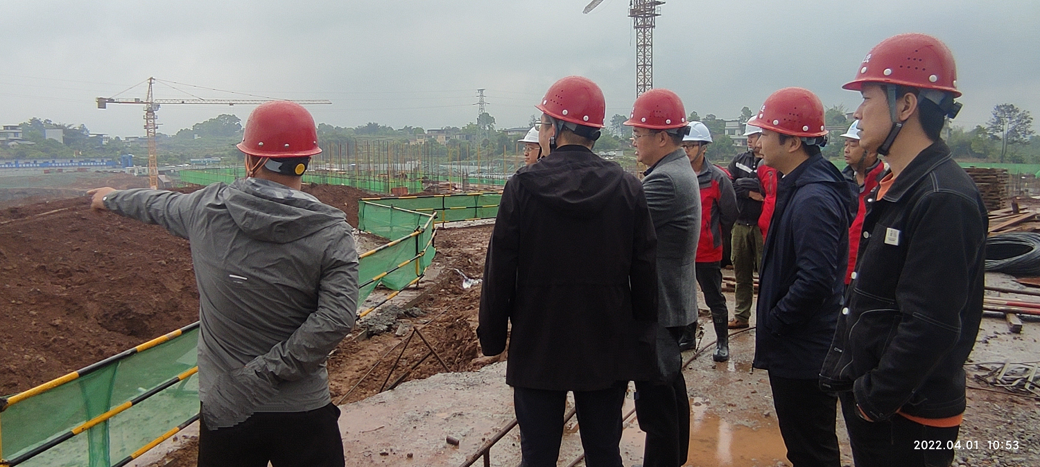 2022 年 4 月 1 日上午, 江北公司陳目科董事長帶隊視察 江北連接線、 江北文化綜合體項目、 學府家園等項目建設情況。