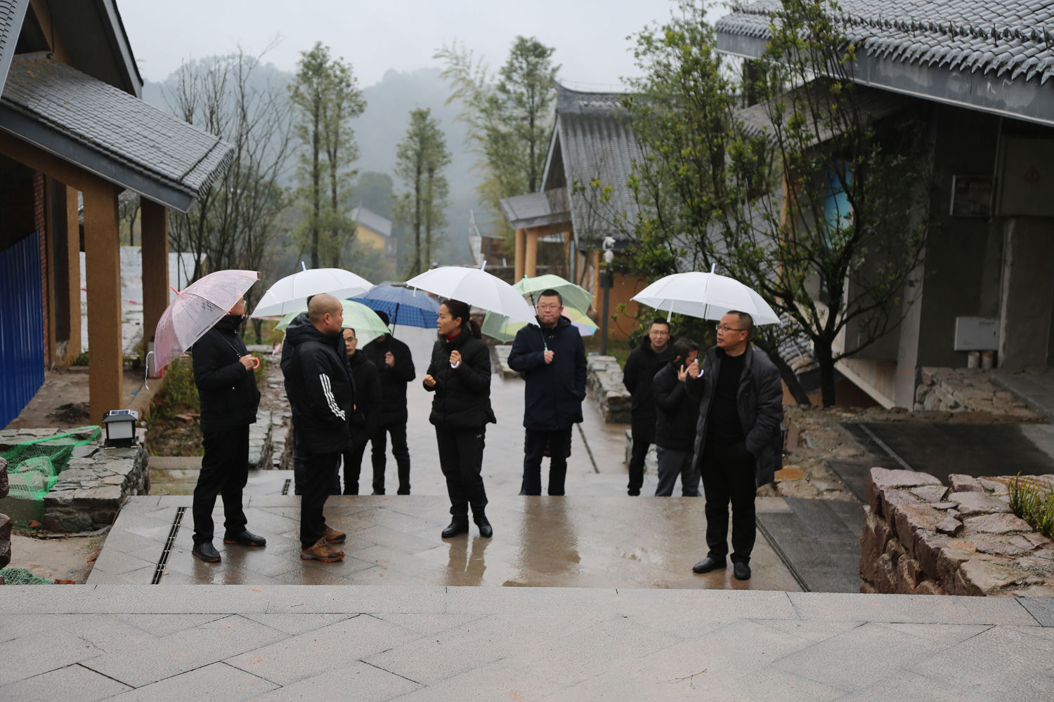 游啟君一行先到景區(qū)天街進(jìn)行現(xiàn)場勘查, 詳細(xì)了解了景 區(qū)工程進(jìn)度及預(yù)期運營方向, 隨后在法王寺龍掛山景區(qū)—半 山云舍召開了座談會。 會上, 集團公司領(lǐng)導(dǎo)對景區(qū)前期建設(shè)、 運營工作給予了充分肯定, 并鼓勵文旅公司員工要繼續(xù)鉚足 干勁、整合力量來加快項目建設(shè),力爭早日全部投入運營。